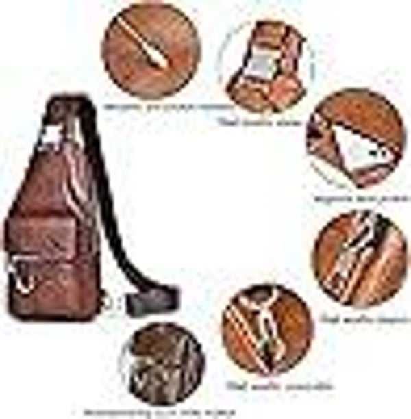Hjkiopc Sling Bag for MenLeather Chest BagWaterproof Shoulder BagsLossy Light BagMobile Phone BagCrossbody Bag for HikingCyclingCamping (Dark Brown)30x15x6cm