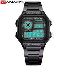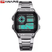 PANARS Men's Waterproof Digital Sports Wristwatch Stainless Steel Strap Backlight Alarm Male Watch High-end