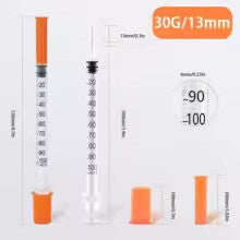 100 Pcs 1ml 30G x 13mm Sterile Individually Wrapped Insulin Syringe with 1/2 Inch